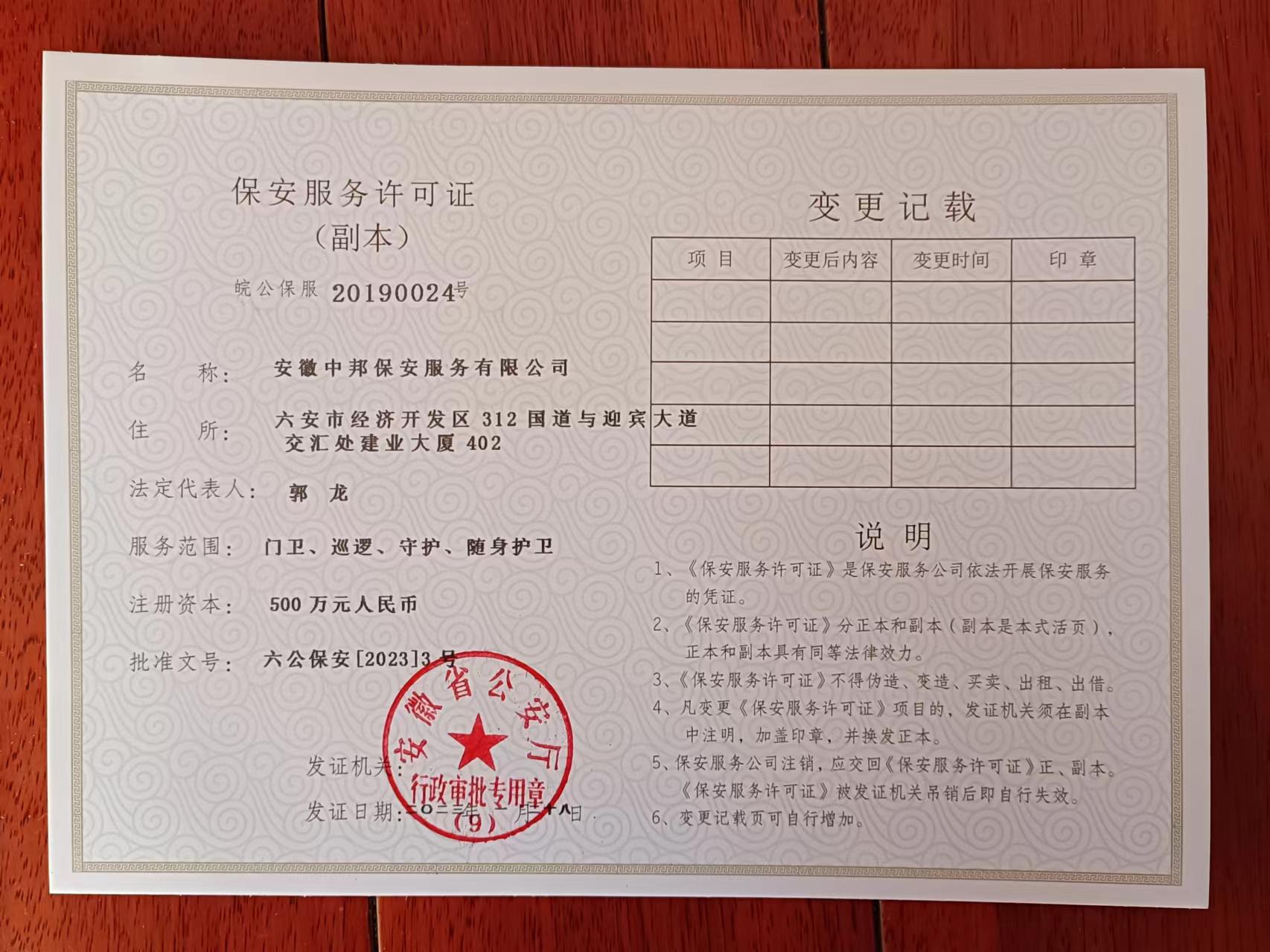 安徽中邦保安服務(wù)有限公司總公司成立于2019年。公司